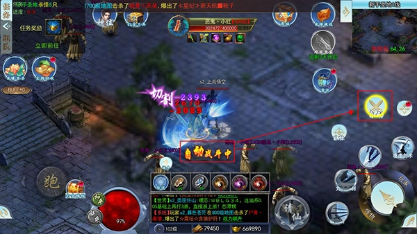 2、在进入战斗状态时,玩家可以打开左侧的自动挂机,解放双手,自动挂机战斗。