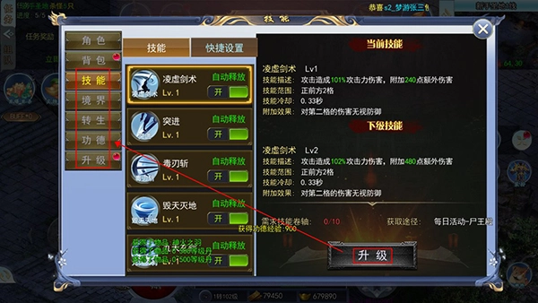5、游戏内还有技能、境界、转生等系统,可以提升角色战力。