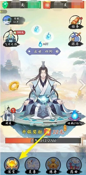 2、接着点击游戏下方的法宝图标跳转页面