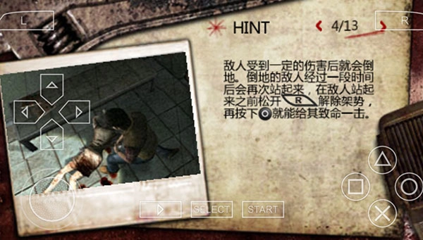 2、敌人受到一定的伤害后就会倒地,倒地的敌人经过一段时间后会再次站起来,在敌人站起来之前松开“R”解除架势,再按下“圆圈”就能给其致命一击。
