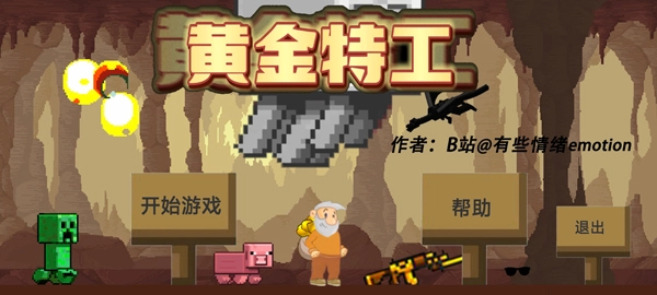 黄金特工这款游戏,是B站UP主“有些情绪emotion”以经典游戏《黄金矿工》为基础改编创作的,制作过程中还融入了其他一些经典游戏的元素,整体玩起来趣味性十足,称得上是一款十分好玩的休闲动作射击冒险类游戏。