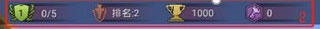 -从左至右分别显示的信息为,玩家等级、玩家段位以及排名、玩家当前荣誉值,玩家所持钥匙数量