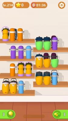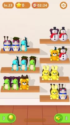 2.整个玩法非常的简单,玩家在这里只需要将相同的元素放置在同一个货架上就可以完成消除。