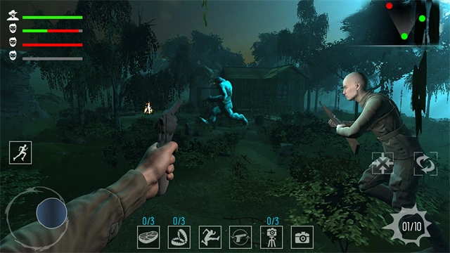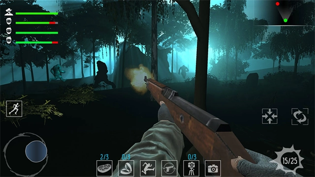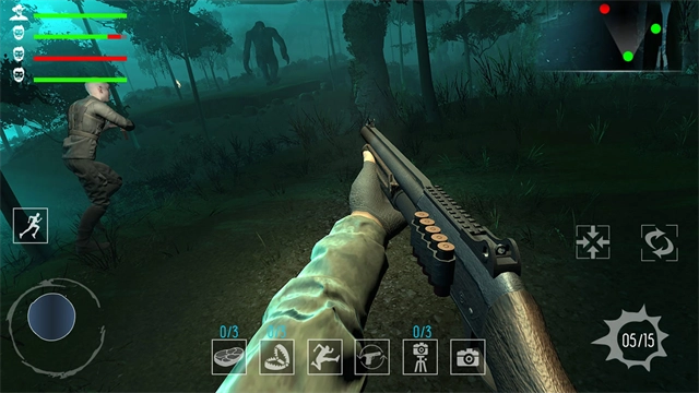 《大脚怪狩猎》是一款带有恐怖氛围的射击生存游戏。在游戏里,玩家将化身勇敢的资深猎人,为了探寻传说中的大脚怪,独自踏入一片幽暗森林。游戏采用暗黑风格的画面设计,玩家需配备各类道具,以此在黑暗环境中获得更强的战斗能力。不过对大脚怪而言,黑夜正是它的主场,玩家需要利用身边的道具与武器,也能邀请好友一同加入游戏,携手追踪大脚怪的踪迹,尽力将其击败。
