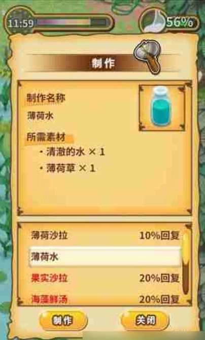 制作驱虫剂:在湖泊或森林右下方的水池收集水源(需使用空瓶),再与薄荷草混合,可制作驱赶蝙蝠的薄荷水。