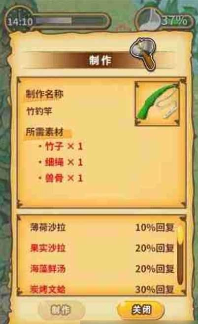 3、制造鱼竿可以在海边钓鱼,获得鲜美的鱼肉;