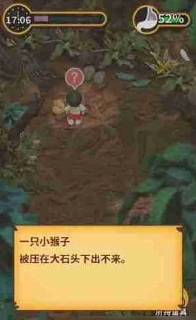 帮助猴子:在密林左上角,移开压在猴子身上的石块。
