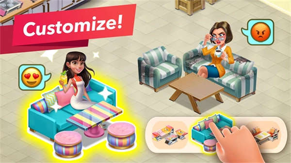 在游戏中玩家可以根据喜好任意装修餐厅,招聘并培训员工,制定菜单和价格。