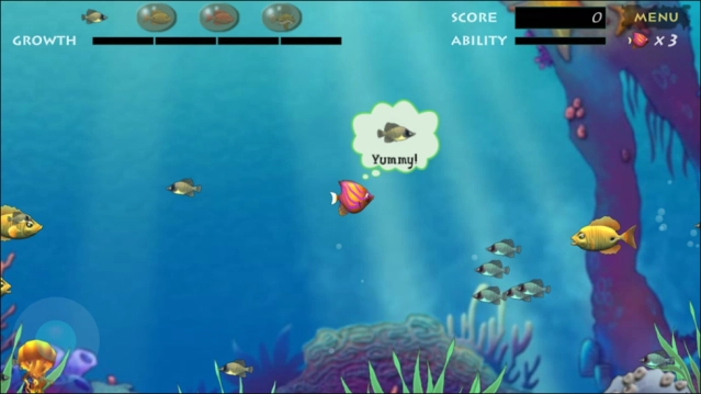 1、立体画面的展示效果,你吃到的小鱼在这里会立刻变得更加巨大,但也有不能吃的东西;