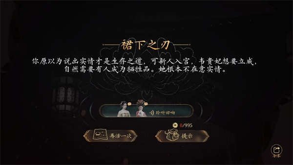 6、不断做出合适的选择在这个皇宫里生存下去吧。