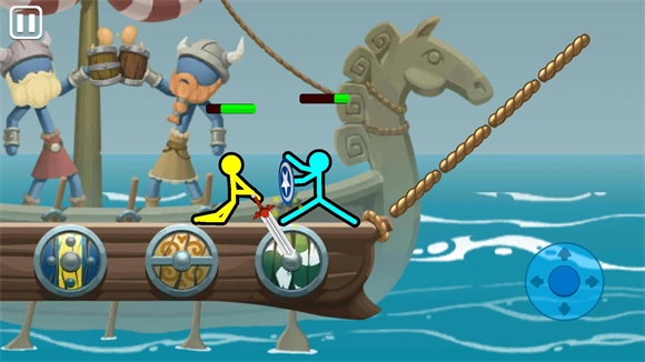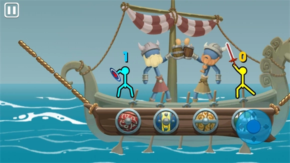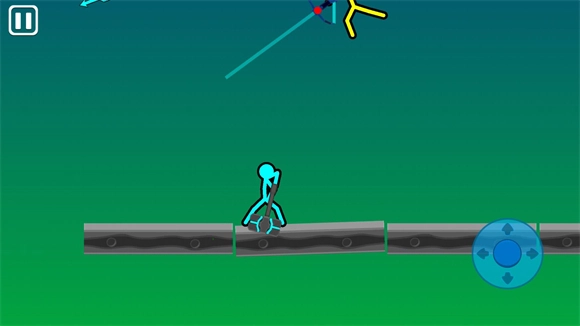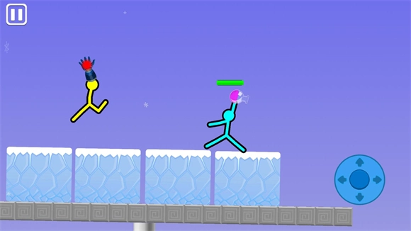 3、进入地图后玩家不需要控制方向,只用控制右边的攻击按钮就可以操控火柴人战斗。