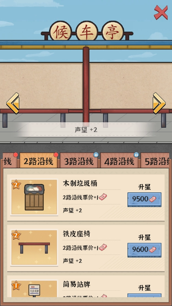 5、我们还可以通过升级站牌的各种物品来提高票价收入。