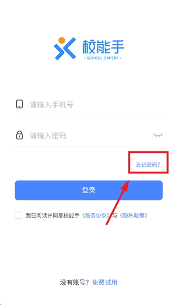 安装并打开校能手,先同意并接受服务协议和隐私政策