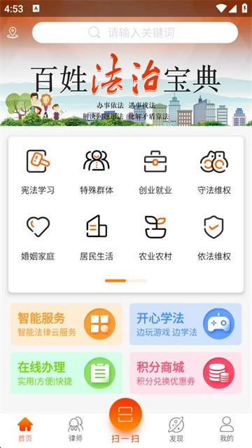1、首页:这里有各类精彩的基础玩法等你来尝试,还能畅享更多优质的法律服务!