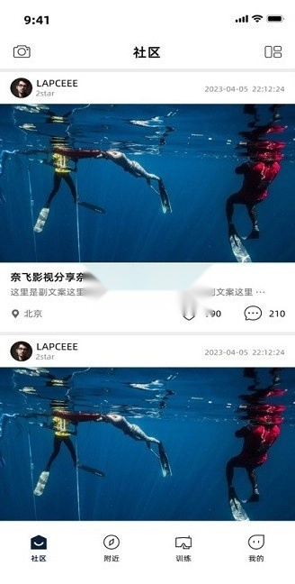社交互动平台:除了个人训练之外,Free Dive还构建了一个社区,让潜水者可以在这里交流心得、分享经验、发布活动信息,并与其他潜水爱好者建立联系。