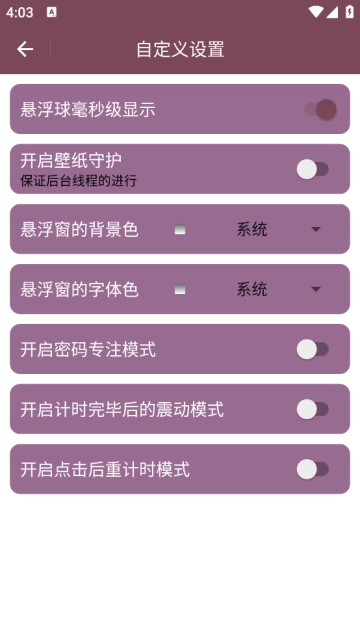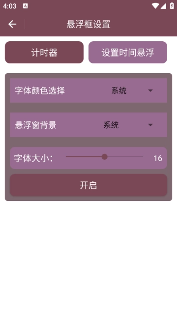 应用内的悬浮框功能可以设置悬浮计时器与时间悬浮,可以设置悬浮框的字体颜色与背景。