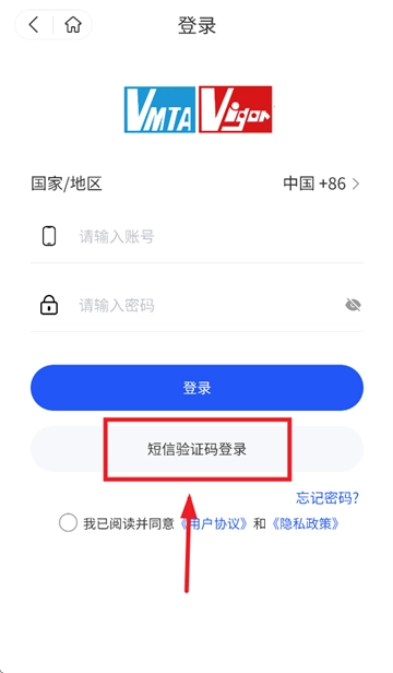 输入账号,验证码,勾选我已阅读并同意 《用户协议》 和 《隐私政策》,点击登录即可