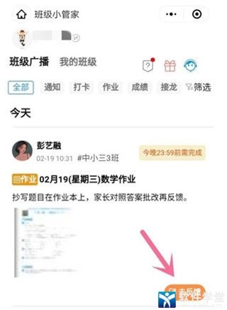 2、进入到数学作业反馈情况的界面,点击底部【反馈作业清点击这里】。