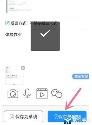 5、可以看到类似【相机图标】上方有刚才选好的【作业照片】。点击【保存并提交】,屏幕显示【√】表示上传作业成功。