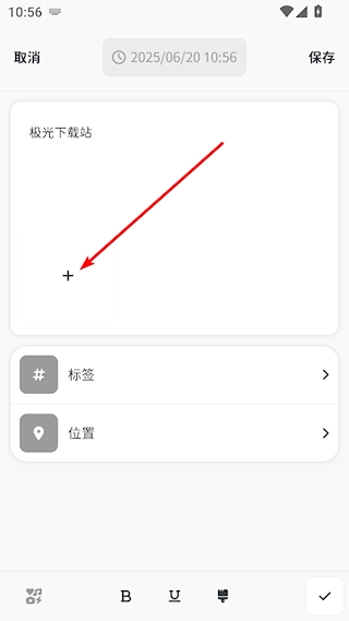 1、打开时刻日记,点击底部输入框内左边的按钮