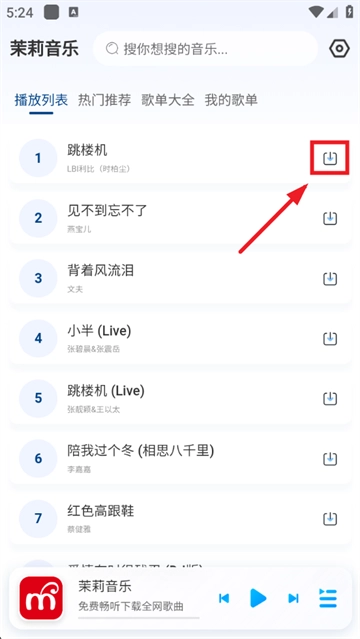 1、搜索到音乐后,点击歌曲右侧的按钮