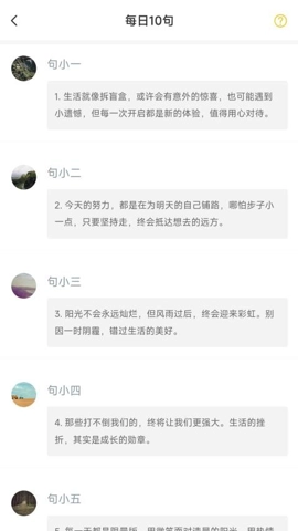 1、这款应用具备每日10句的特色功能,用户每日都能够领略到经过精心挑选推荐的优美语句。