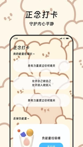 1、特别增设了正念打卡功能,用户可以在应用中开启正念冥想,帮助自己放空大脑,减轻压力。