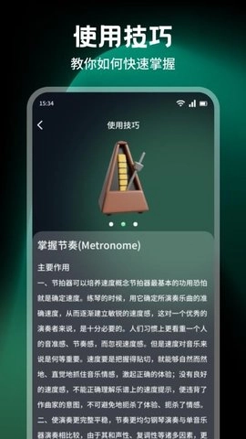 2、对学习乐器的用户来说,是一个不可或缺的工具,能够有效提升他们的节奏感和演奏技巧。