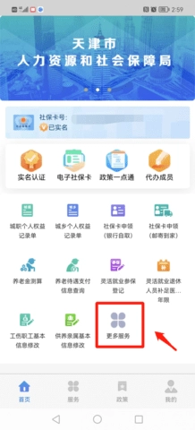 打开“天津人力社保”,首页界面如下;