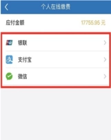 6、选择“银联”、“支付宝”或者“微信”支付;