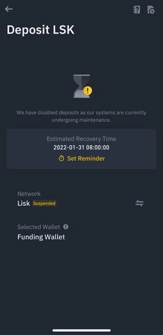 如要使用的网络处于维护状态,屏幕上将显示消息,告知用户系统正在进行维护。钱包维护期间,App端和均会显示下方的提现/充值暂停消息。
