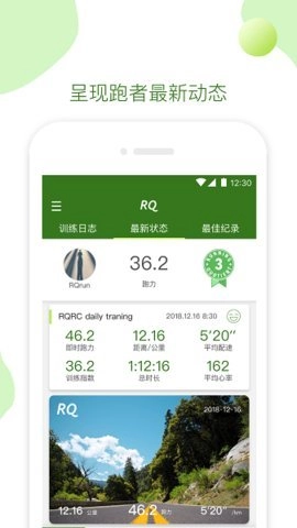 2、RQ跑步还提供了最新动态显示最近一笔跑步记录的功能,并且会自动生成水印图。