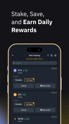 2.搜索想要申购的加密货币。您将看到不同资产的年利率,以及当前的市场价格。点击资产,立即开始。