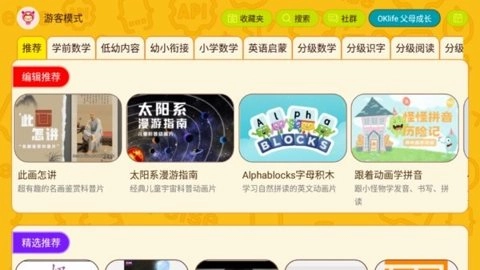 OKmath全科启蒙是一款面向儿童的安卓启蒙教育学习应用。这款应用包含幼小衔接、小学数学、英语启蒙、分级识字阅读等多样内容。借助分类明晰、图文并茂、趣味教学等手段,OKmath全科启蒙引领孩子高效学习,培育他们多方面能力,助力其成长。此外,OKmath全科启蒙设置了不同难度等级,以满足不同年龄与能力的孩子开展契合自身水平的练习。