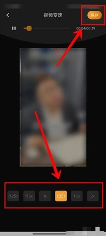 进入视频变速页面后,在视频下方选择一个播放速度,然后再点击【保存】即可。