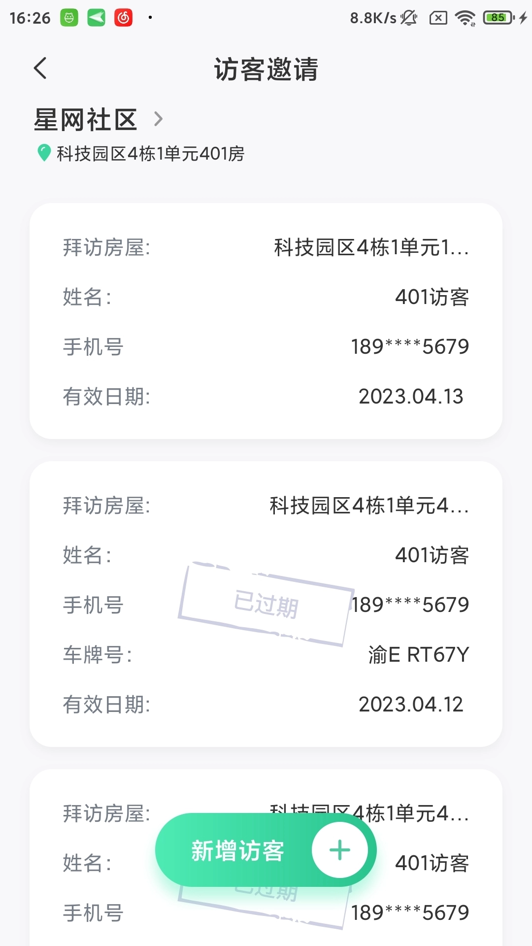 1. 用户能够在此处发布针对访问者的邀请,同时记录访问者的相关信息。