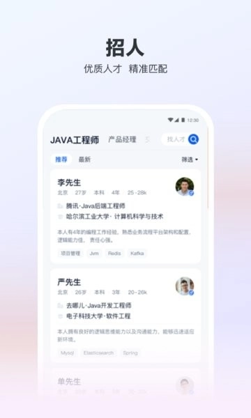2、推荐高质量的人才,并根据所公布的岗位信息,为其推荐合适的人才。
