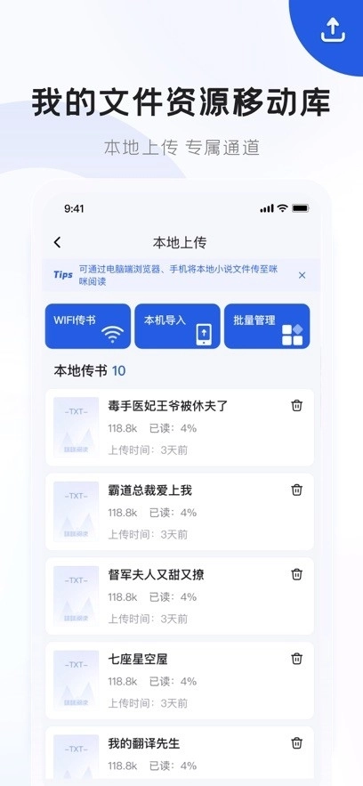 1、咪咪阅读优化网络连接,减少流量消耗,让用户在阅读时更加省心。