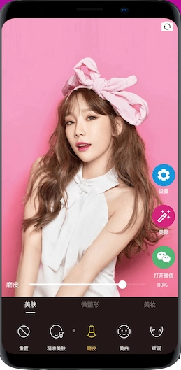 3、多种美颜功能,包含智能磨皮、美白、瘦脸、大眼等基础美容功能,还有 AI换装、一键成片等更高端的功能,让你拍出的每张图片,都是那么的光彩夺目。