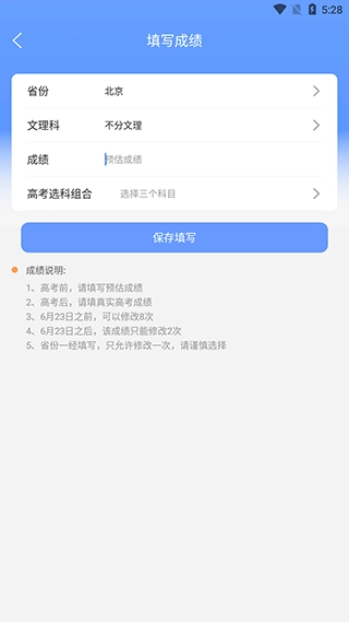 1、首先打开AI志愿填报助手,进入后先登录账号,然后在软件首页上方完善我们的省份、文理科、成绩等信息。