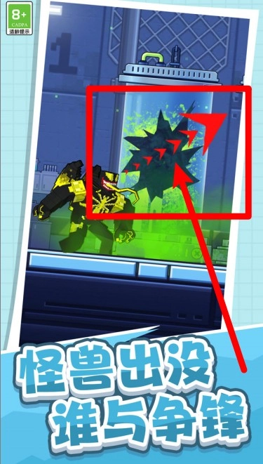 2.怪兽觉醒出击:当怪兽打破实验舱玻璃后即正式觉醒,玩家将进入战斗状态,全力释放技能开始全面破坏场景。