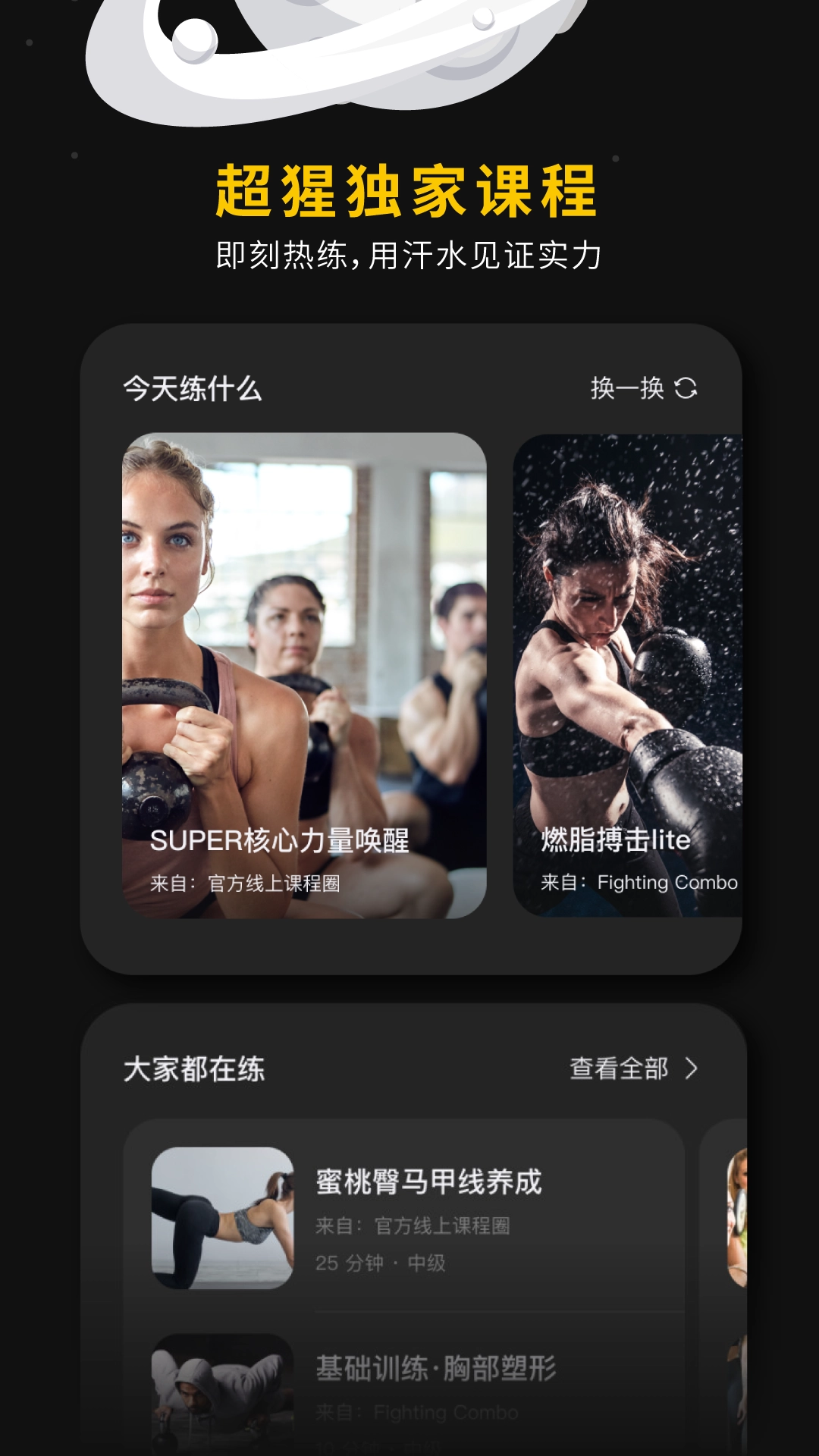2、超级猩猩方便网根据兴趣筛选,这里提供了丰富训练项目,快速找到优质的锻炼项目。