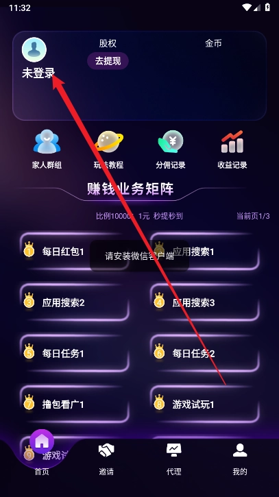 1.支持在线创建家人群,能够直观查看收益记录。
