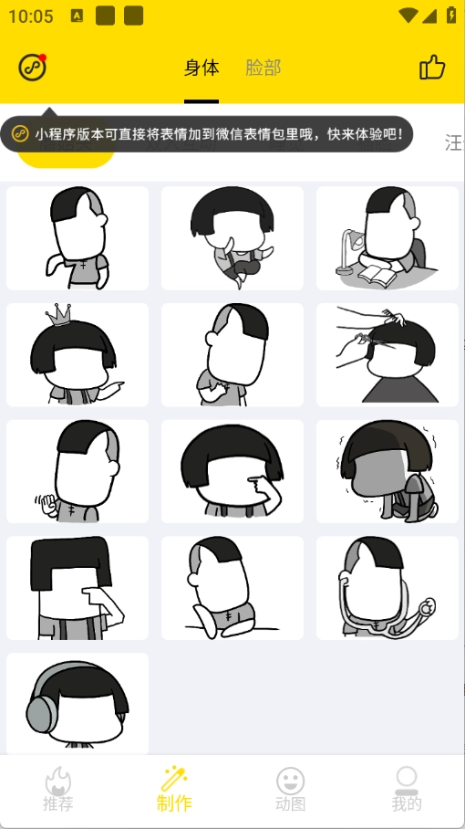 3、提供大量的创意模板,包括热门梗、搞笑表情、节日祝福等,让你获得更多的灵感。
