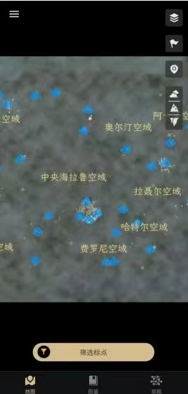 1. 开启软件后,映入眼帘的界面上呈现着各个地图的标记,接着点击下方的筛选标点。