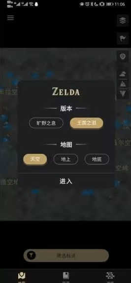 1. 开启塞尔达助手,挑选游戏版本,当下软件中收录了《旷野之息》与《王国之泪》这两个版本的地图。