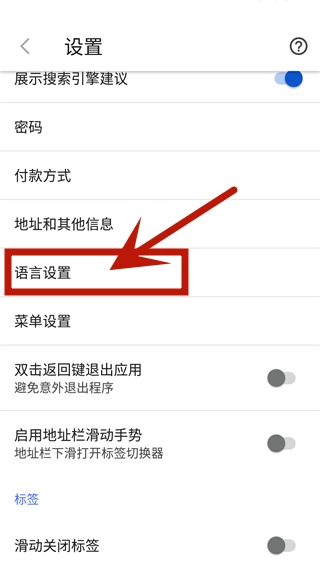 3、在设置页面向下划,找到语言设置栏并点击进入语言设置。