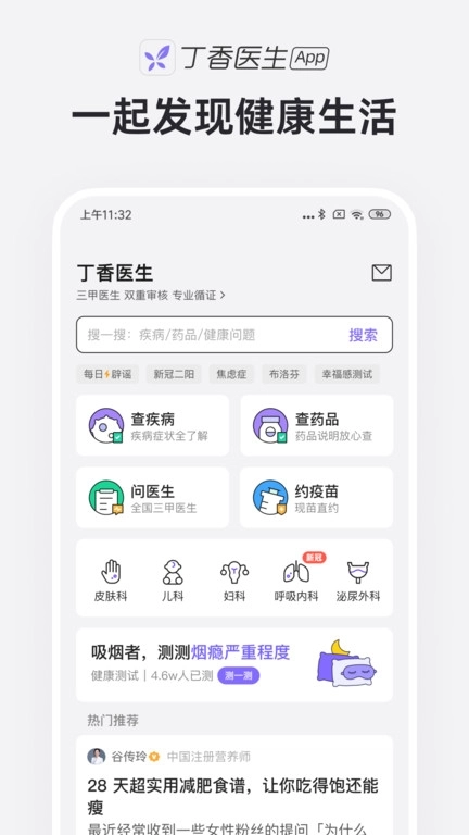1.丁香医生凭借其强大的医学团队,为您呈上最为全面的保健服务。