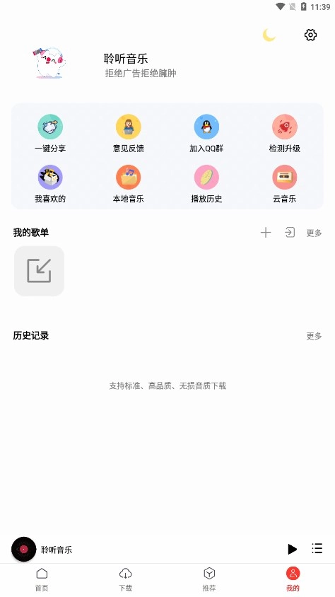 聆听音乐纯净版的软件页面十分干净简洁,不存在多余广告。借助这款软件,用户能轻松搜索到自己喜爱的歌曲,其歌曲类型丰富多样,涵盖嘻哈、摇滚、古风、抒情等各类风格。并且,这里所有音乐均为无损音质。不仅如此,软件还具备排行榜功能,用户可借此知晓近期热门歌曲。