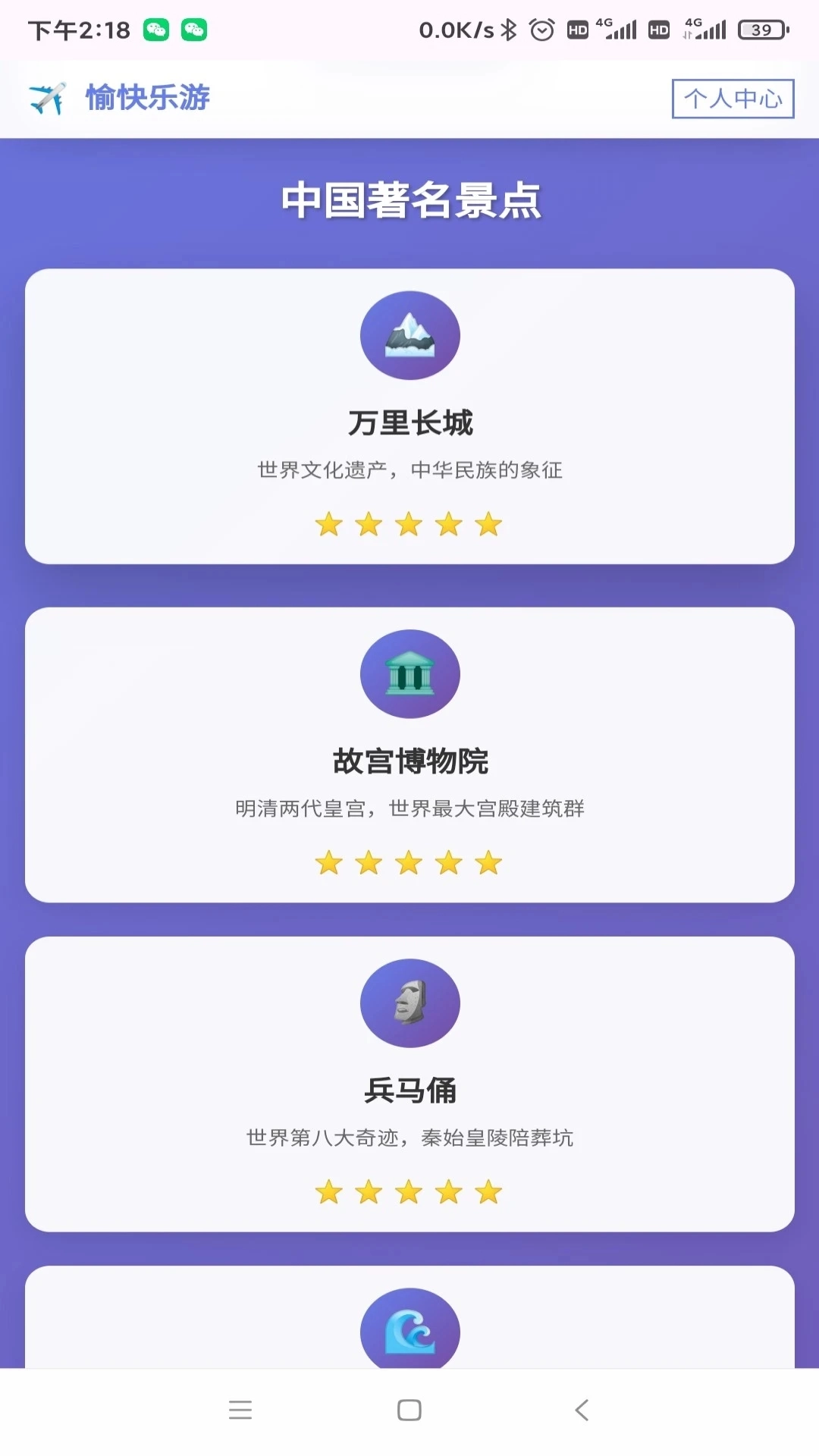1、个性化推荐景点,根据用户喜好提供定制化旅游方案。